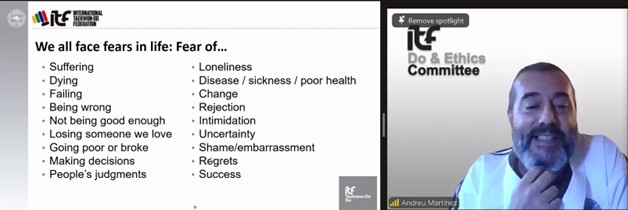 A lo largo del curso, los asistentes exploraron el significado de «Do», los Principios del Taekwon-Do y el Juramento del Estudiante, el razonamiento moral, la motivación, la humildad, la lealtad, el respeto y los componentes psicológicos del comportamiento humano. En lugar de limitarse a presentar teoría, los instructores crearon un ambiente altamente interactivo: encuestas, cuestionarios, discusiones en salas de grupos y presentaciones visuales mantuvieron a los participantes involucrados, reflexivos y conectados a pesar de la distancia.
