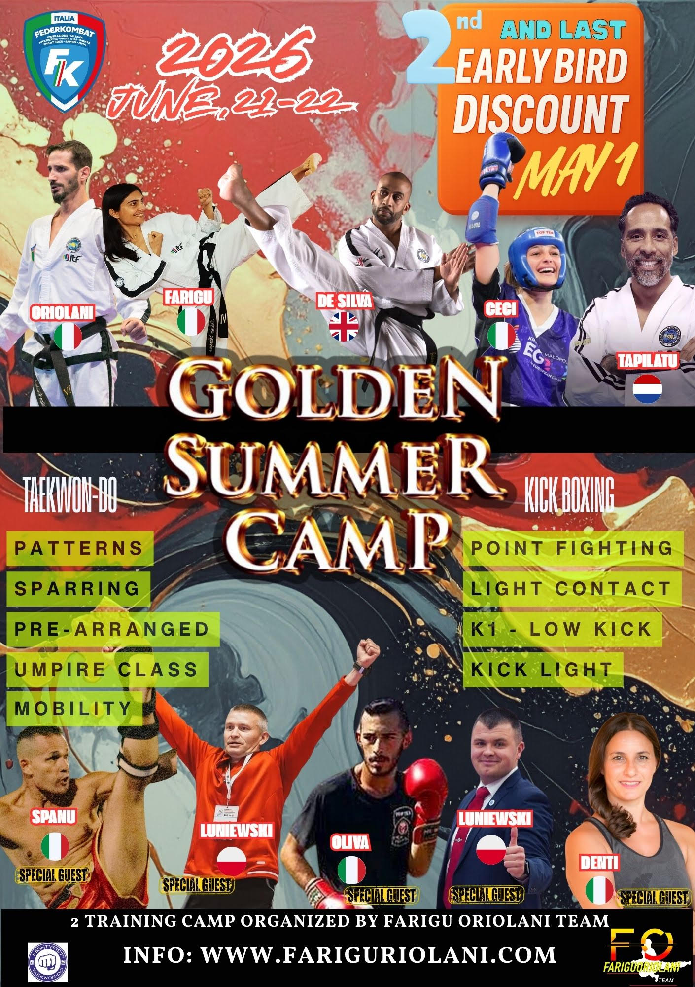 Following the resounding success of its inaugural event, the Golden Summer Camp returns for its second edition. On June 21-22, 2026, Capoterra (Sardinia), Italy, will become the global epicenter of martial arts excellence.