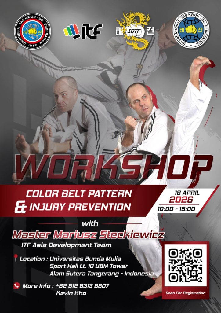 The ITF Asia Development Team will hold a technical development seminar in Tangerang, Indonesia on Saturday, April 18, 2026, led by Master Mariusz Steckiewicz VIII Dan.